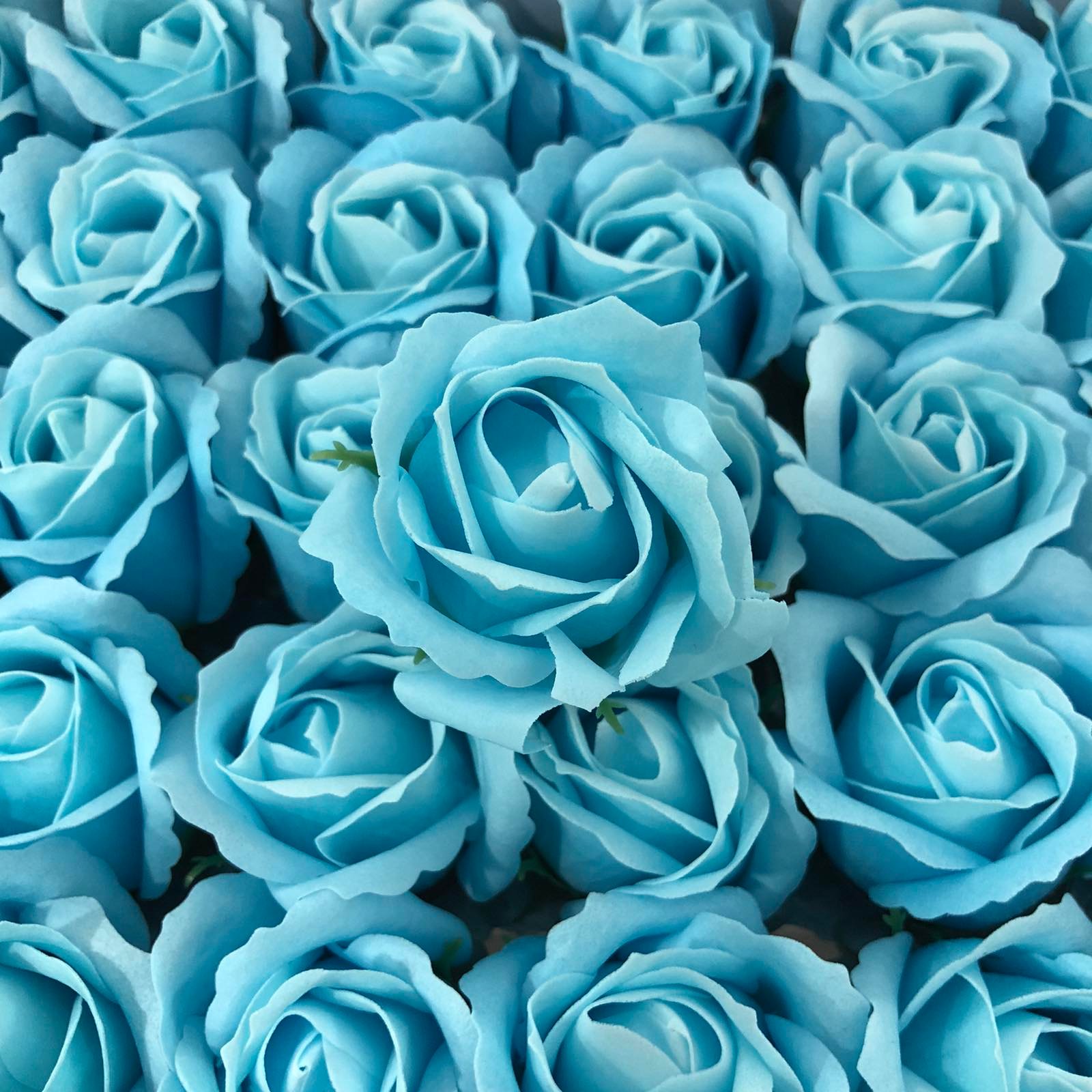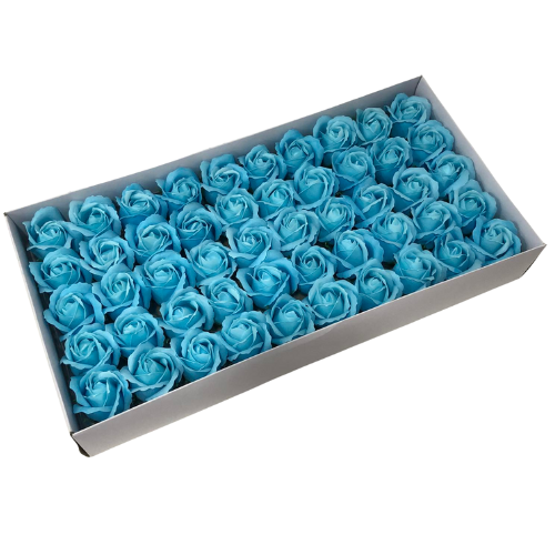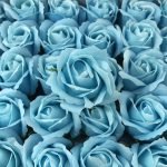 Бебешко сини изкуствени рози от мек пластичен ароматен сапун 5см глави. Те могат да бъдат използвани за празнични украси, ръчно изработени подаръци, букети и различни цветни аранжировки. Розите се предлагат в кутия от 50 бр.