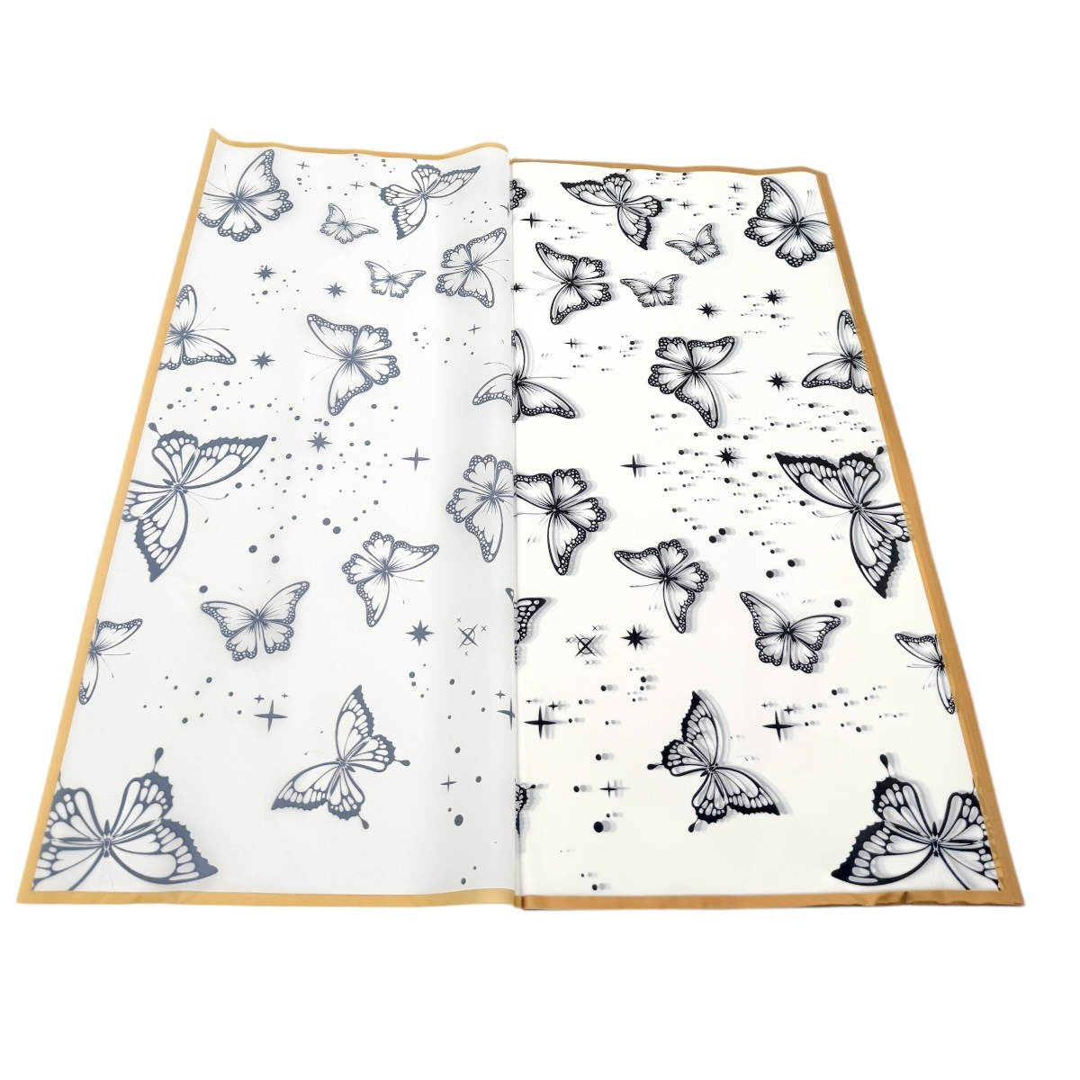 Полупрозрачен целофан за опаковане в интересен дизайн на пеперуди. Целофана е подходящ за опаковане на букети, подаръци и други крафт проекти. Оформят се лесно и придават стилна визия на всяка цветна аранжировка или подарък. Предлагат се в пакет от 20 бр листа в размери 58/58см.
