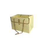 Жълта кутия „чантичка“ с елегантен дизайн и дръжки от синджир е подходяща за аранжиране на подаръци с цветя, свещи, бонбони и други материали. Размера на чантичката е 10см/15см/10,5см в разгънато състояние.